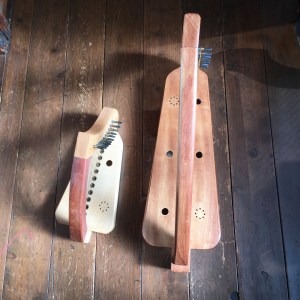ご依頼いただいていた20弦と12弦の金属弦ハープが完成しました。通算101台目と102台目となります。今回はじめてシカモアを用いたのですが、ハードメープルに比べるといくぶんか掘りやすかった気がします。高音域がとってもいい響きになりました。12弦の小さなハープは新たに設計したもので、サイズ的には8弦のものとほとんど変わりませんが、演奏できる曲の幅が広がります。また8弦のときには両手で弾くのは難しかったのに対し、12弦あればぎりぎり両手で弾けることがわかりました。とても良い仕上がりになったので、自分用にも1台作ってみたいと思いました。ピッチを440ではなく、432のミーントーンにしてほしいというご依頼だったので、そのように調弦しているので聞こえ方がかなり違うと思います。