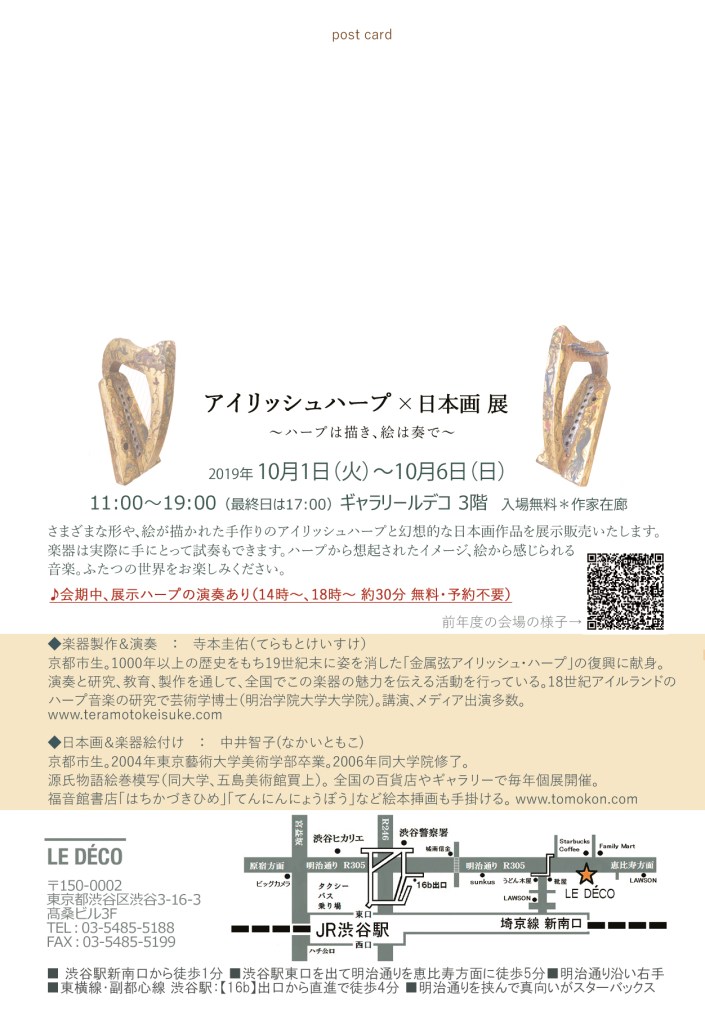 2019年10月1日(火)から10月6日(日)に、渋谷のギャラリールデコにて「日本画×アイリッシュ・ハープ展」を開催。