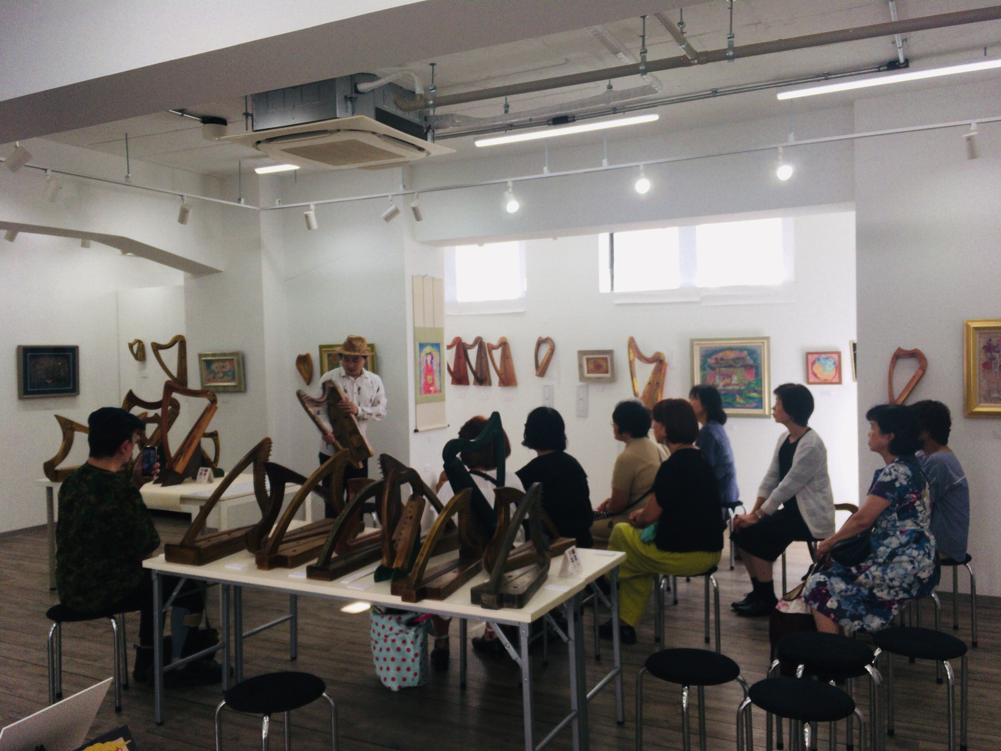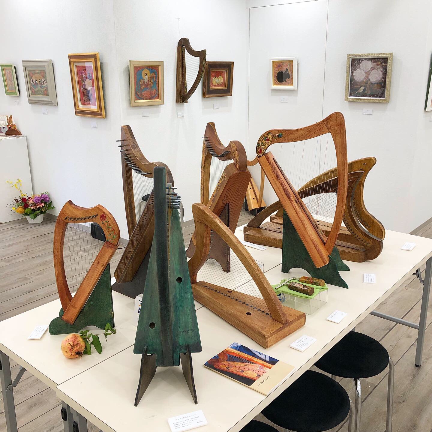 渋谷ルデコでの日本画×アイリッシュ・ハープ展を大盛況のうちに終了した後、京都教室を経て、福岡と佐賀でのワークショップ、コンサートを終えました。連日満席の九州ではとても素晴らしい出会いがあり、桐製の金属弦ハープと緑色のアルダー製金属弦ハープをお買い求めいただきました。