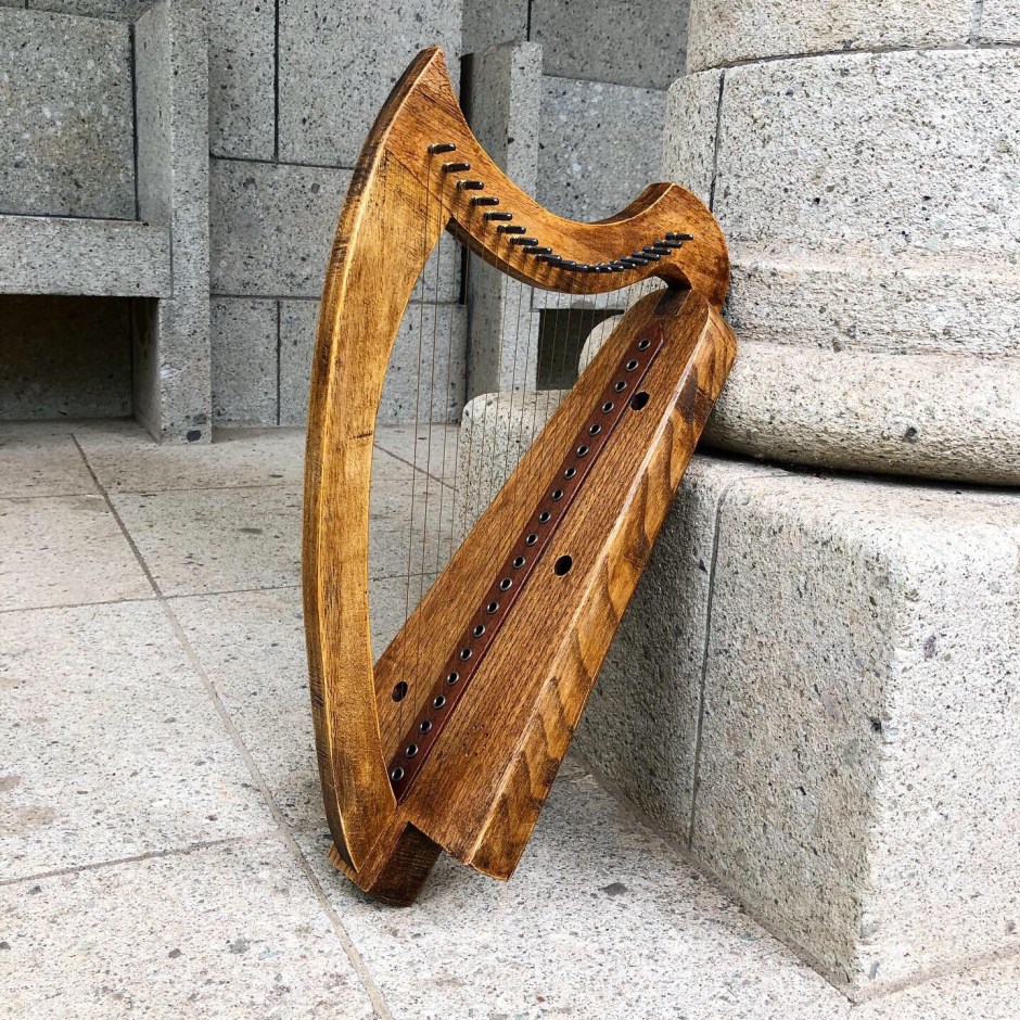 使用するのは私が製作している小さな金属弦ハープ。気に入ったハープがあればその場でご購入いただけます。ハープ製作予約についてのご相談も承ります。