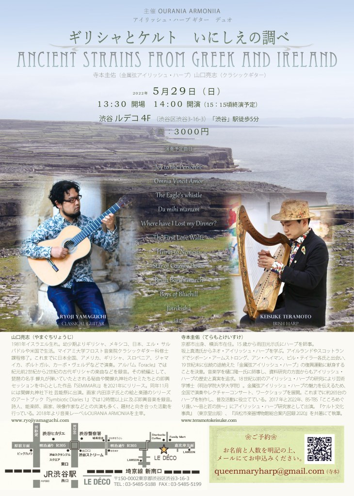 「ギリシャとケルト いにしえの調べ アイリッシュ・ハープ、ギター デュオ」