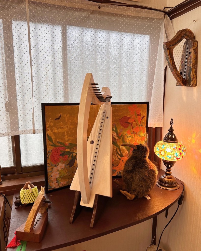・私が製作した金属弦ハープを教えていますが、他社製のハープ、小型ナイロン弦ハープも教えています。