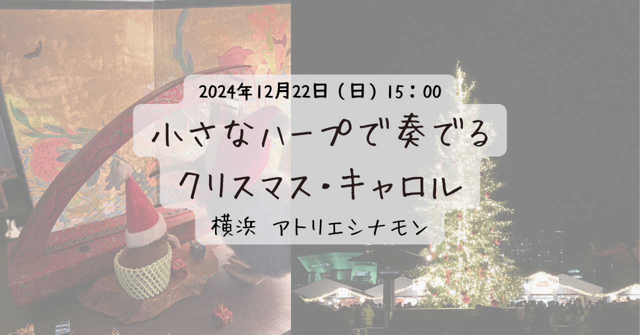 金属弦ハープのキラキラした暖かみのある音色はクリスマスの曲にとってもよく調和します。YouTube 動画にもたくさんアップしていますが、ぜひ直接お聞きいただければと思い、横浜、日吉のアトリエシナモンにてクリスマスコンサートを開催します。