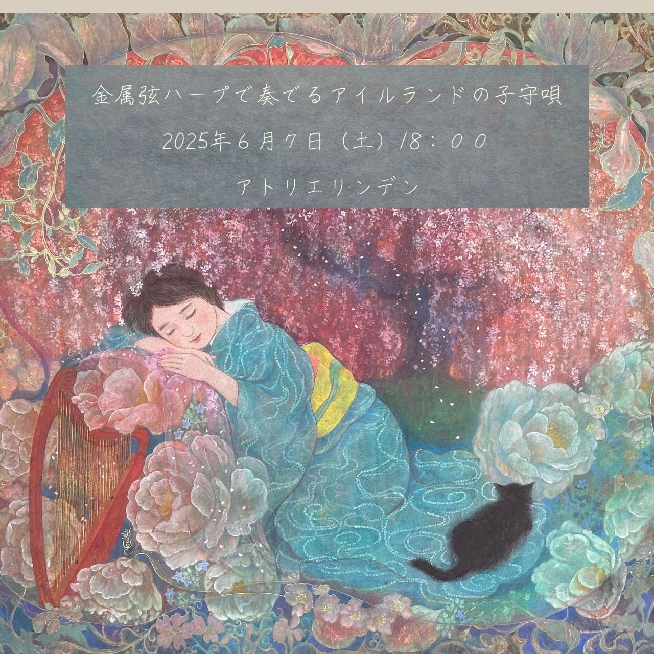 アイルランドの子守唄を集めたアルバム『スーントゥリー 眠りの弦 vol.1』のリリースを記念したコンサート。会場では日本画家中井智子による眠りをイメージした絵画を展示します。ハープの音とともにお楽しみください。19時過ぎに終演予定です。